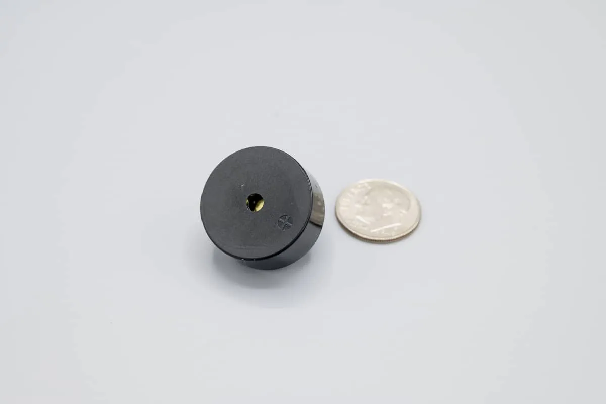 BZR-PC23095-12V-W – This model is 23mm in diameter and wave solderable. Rated operating conditions: 4 ~ 18VDC / 15 mA / 3.3KHz / 82dB @ 10cm.